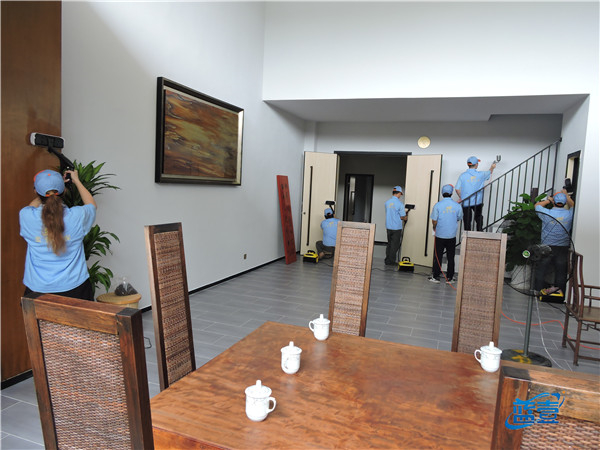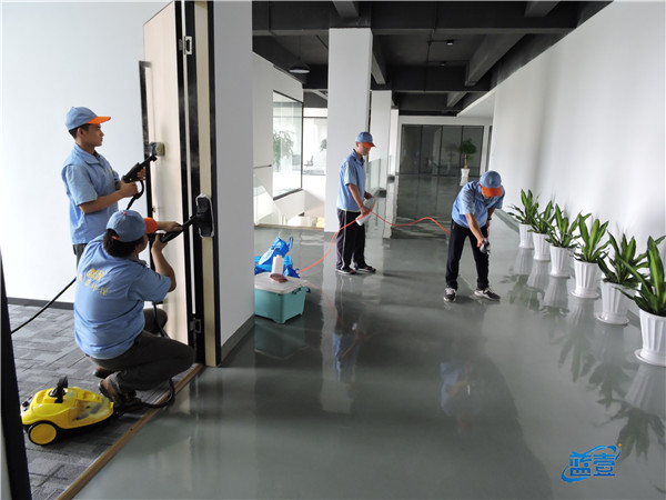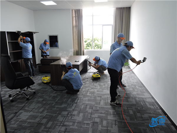 蓝壹除甲醛小团队分工有序高温熏蒸喷洒药剂专人专责。